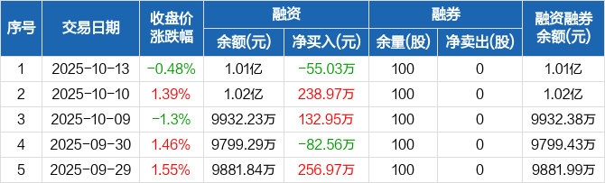 海利尔:融资净偿还55.03万元,融资余额1.01亿元(10-13)