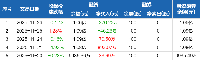 海利尔:融资净偿还270.23万元,融资余额1.06亿元(11-26)