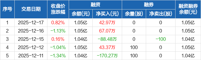 海利尔:融资净买入42.97万元,融资余额1.05亿元(12-17)