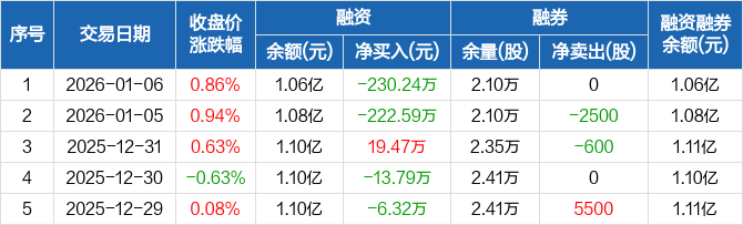 海利尔:融资净偿还230.24万元,融资余额1.06亿元(01-06)