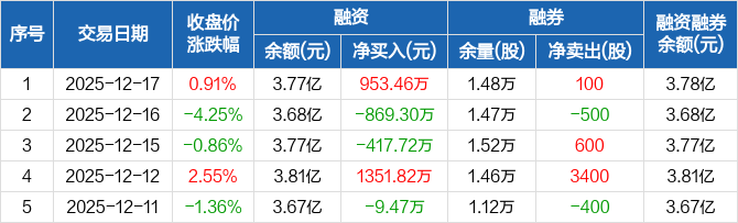 苏州科达:融资净买入953.46万元,融资余额3.77亿元(12-17)