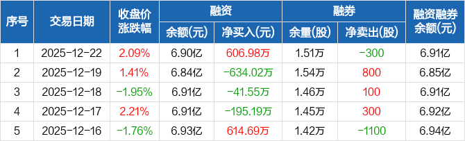 柯力传感:融资净买入606.98万元,融资余额6.9亿元(12-22)
