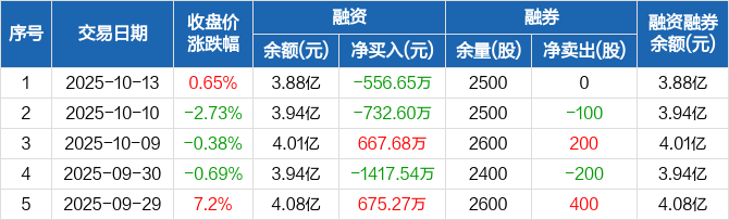 三祥新材:融资净偿还556.65万元,融资余额3.88亿元(10-13)