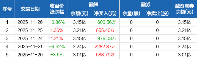 三祥新材:融资净偿还606.56万元,融资余额3.15亿元(11-26)