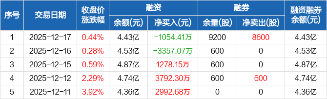 三祥新材:融资净偿还1054.41万元,融资余额4.43亿元(12-17)