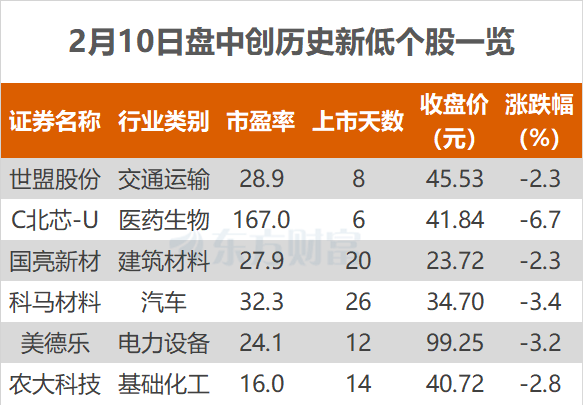 东方财富Choice数据显示,今日有6只个股盘中股价创历史新低。