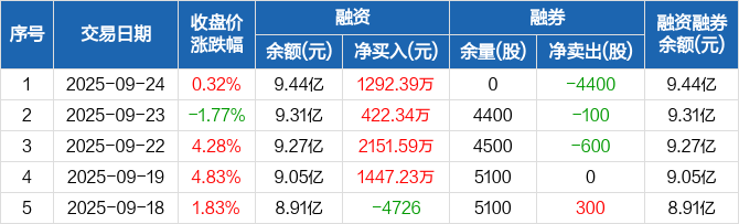 天马科技:融资余额9.44亿元,创历史新高(09-24)