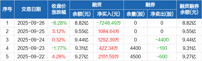 天马科技:融资净偿还7248.49万元,创历史新高(09-26)