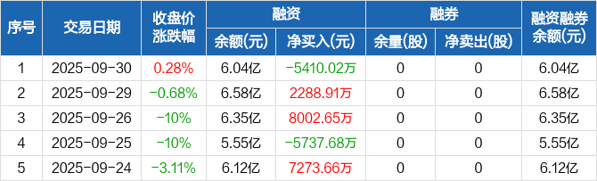 福龙马:融资净偿还5410.02万元,融资余额6.04亿元(09-30)