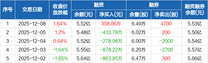 至纯科技:融资净买入358.06万元,融资余额5.52亿元(12-08)