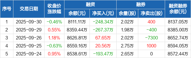 江苏新能:融资净偿还248.34万元,融资余额8111.11万元(09-30)