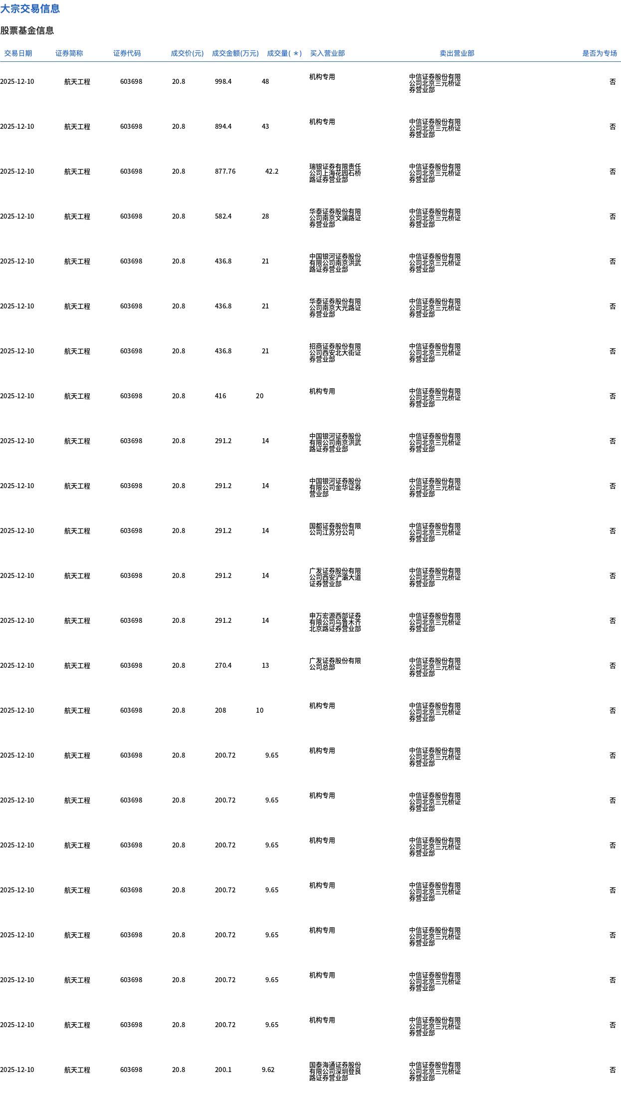 航天工程今日大宗交易折价成交414.37万股,成交额8618.9万元