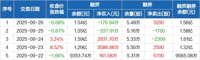 纽威股份:融资净偿还176.94万元,融资余额1.54亿元(09-26)