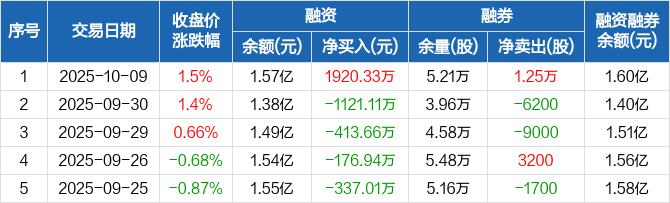 纽威股份:融资净买入1920.33万元,融资余额1.57亿元(10-09)