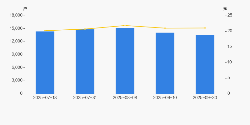2025年7月18日至今,公司股东户数有所下降,区间跌幅为5.57%。2025年7月18日至2025年9月30日区间股价上涨4.26%。