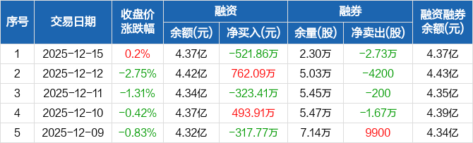 七一二:融资净偿还521.86万元,融资余额4.37亿元(12-15)