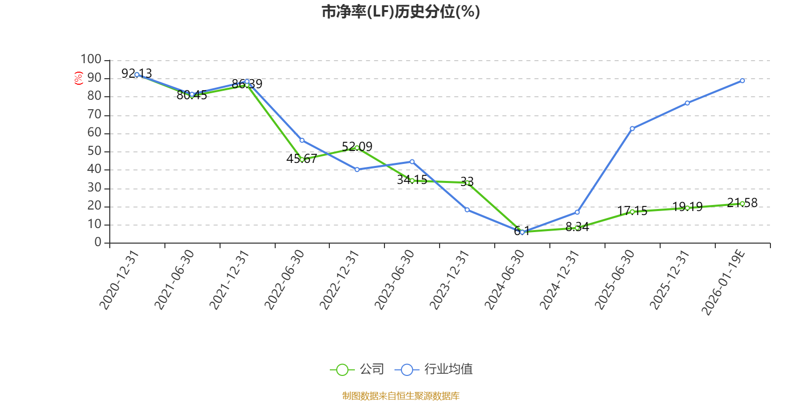 市盈率、市净率为负时,不显示当期分位数,会导致折线图中断。