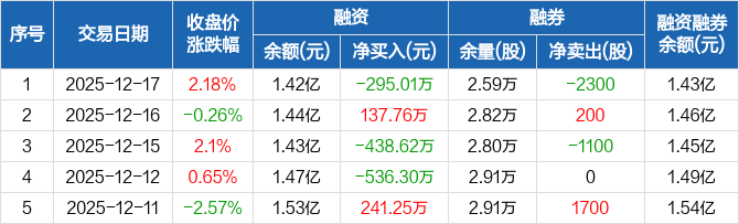 密尔克卫:融资净偿还295.01万元,融资余额1.42亿元(12-17)