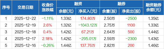 密尔克卫:融资净买入174.8万元,融资余额1.33亿元(12-22)