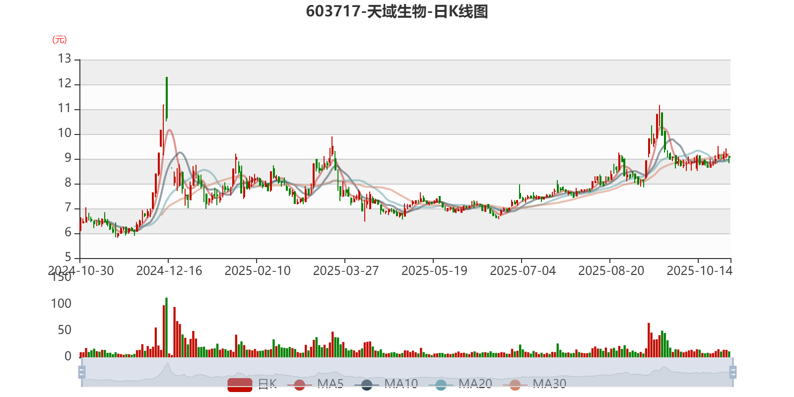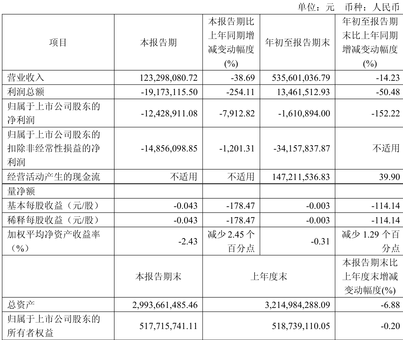 中证智能财讯天域生物(603717)10月30日披露2025年第三季度报告。前三季度公司实现营业总收入5.36亿元,同比下降14.23%;归母净利润亏损161.09万元,上年同期盈利638.77万元;扣非净利润亏损3415.78万元,上年同期亏损172.07万元;经营活动产生的现金流量净额为1.47亿元,同比增长39.90%;报告期内,天域生物基本每股收益为-0.003元,加权平均净资产收益率为-0.31%。
