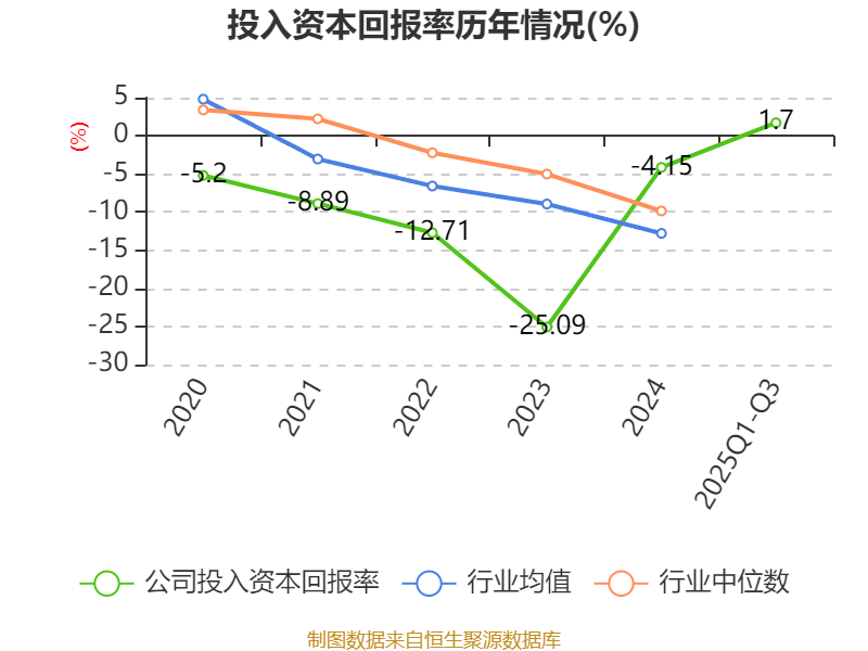 盈利能力方面, 2025年前三季度公司加权平均净资产收益率为-0.31%,同比下降1.29个百分点。公司2025年前三季度投入资本回报率为1.7%,较上年同期上升0.06个百分点。