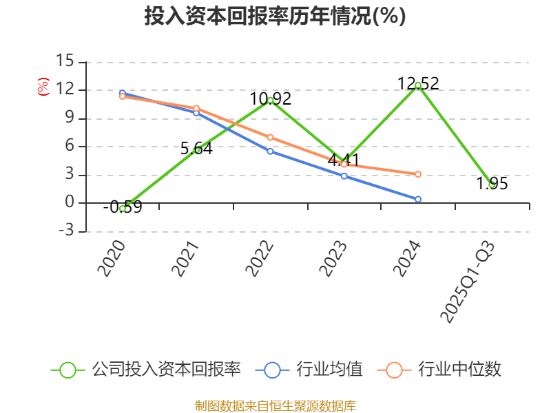 盈利能力方面, 2025年前三季度公司加权平均净资产收益率为1.29%,同比下降0.35个百分点。公司2025年前三季度投入资本回报率为1.95%,较上年同期上升1.1个百分点。