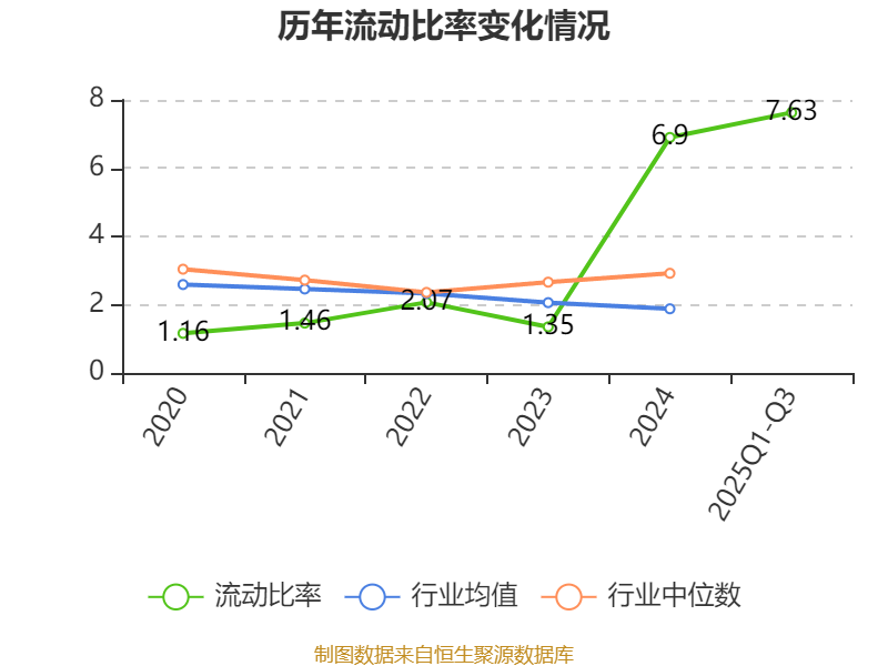 2025年前三季度,公司流动比率为7.63,速动比率为6.92。
