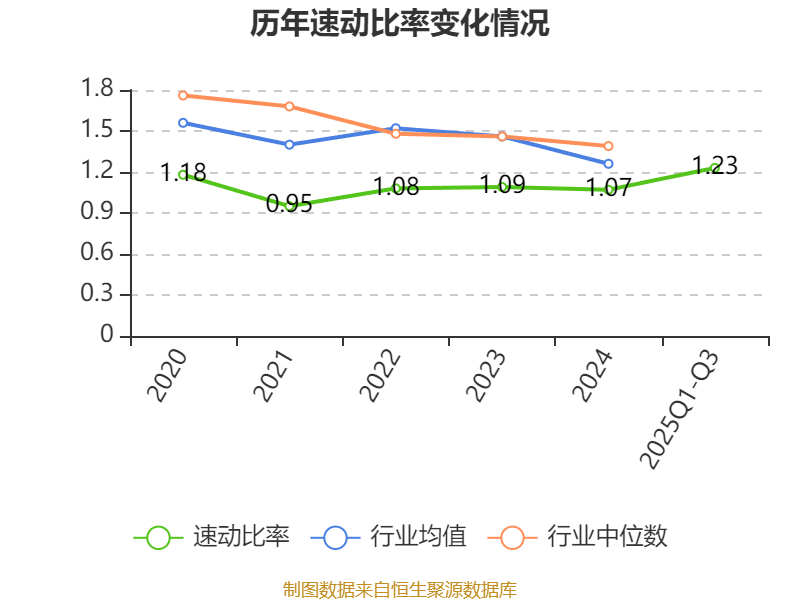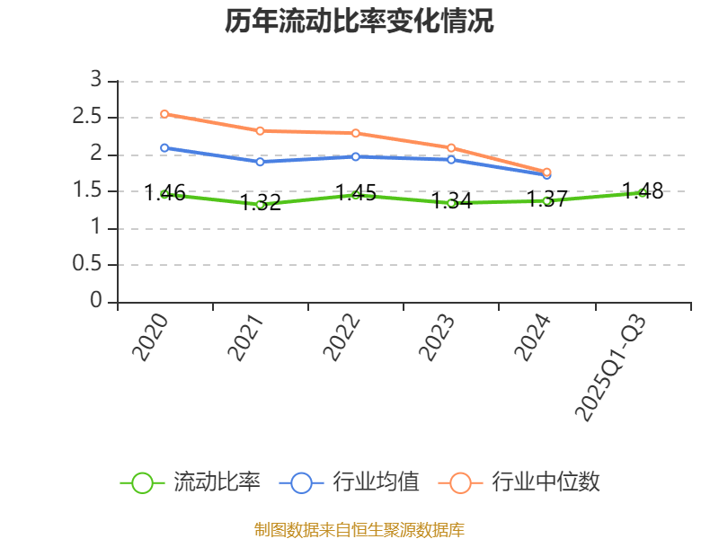 2025年前三季度,公司流动比率为1.48,速动比率为1.23。