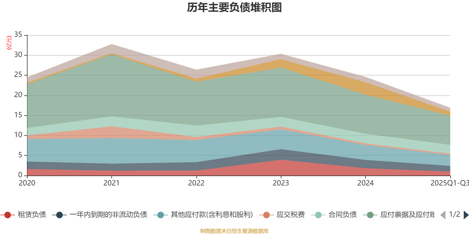 负债重大变化方面,截至2025年三季度末,公司短期借款较上年末减少67.74%,占公司总资产比重下降3.9个百分点;租赁负债较上年末减少45.14%,占公司总资产比重下降1.18个百分点;应付票据及应付账款较上年末减少25.44%,占公司总资产比重下降1.16个百分点;合同负债较上年末减少7.67%,占公司总资产比重上升0.86个百分点。