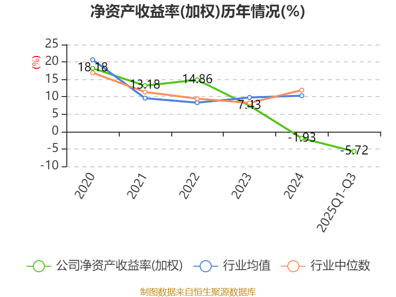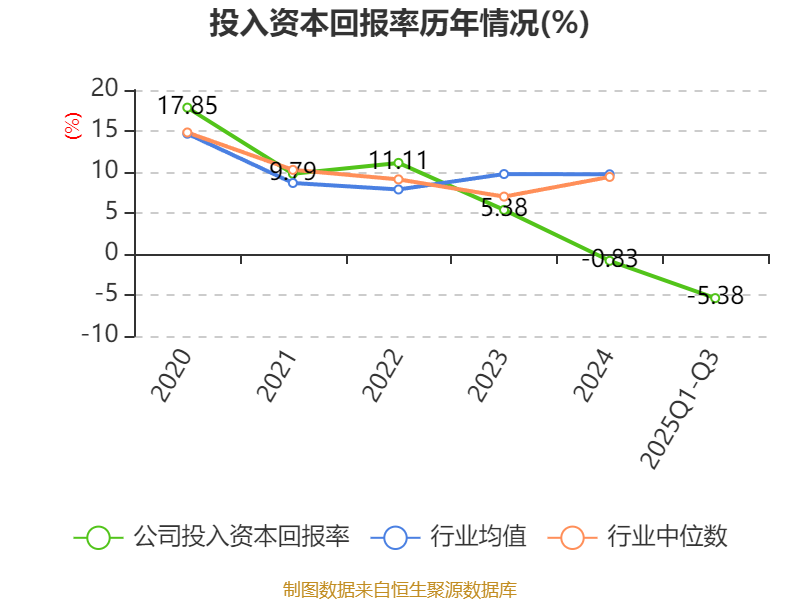 盈利能力方面, 2025年前三季度公司加权平均净资产收益率为-5.72%,同比下降6.51个百分点。公司2025年前三季度投入资本回报率为-5.38%,较上年同期下降5.87个百分点。