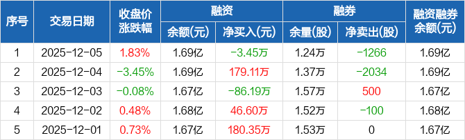 良品铺子:融资净偿还3.45万元,融资余额1.69亿元(12-05)