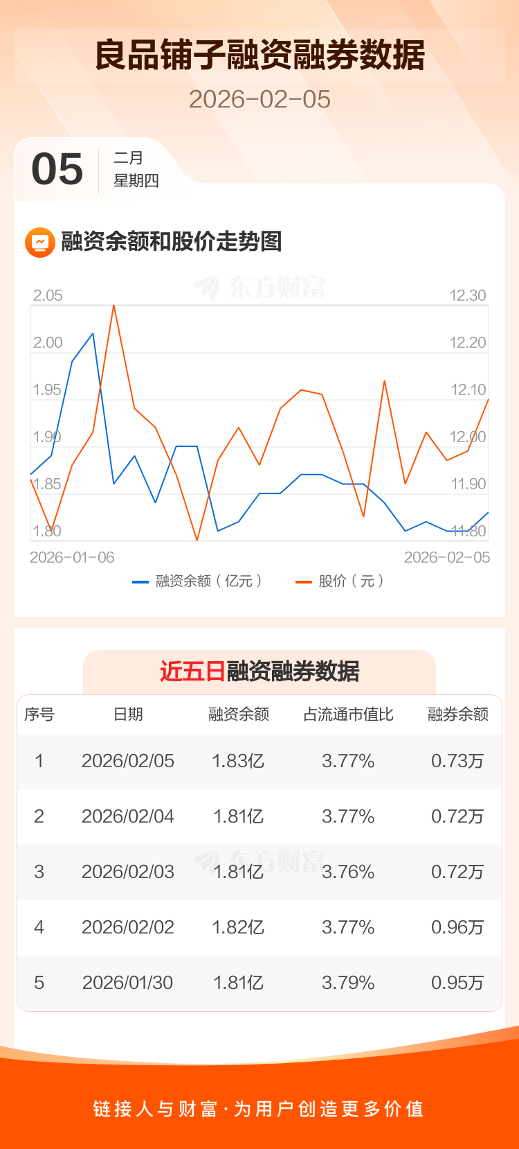 交易所最新数据显示,良品铺子于2026年2月5日获融资买入623.04万元,融资偿还477.22万元,当日融资净买入145.82万元。目前,该股融资余额1.83亿,占流通市值比例为3.77%。