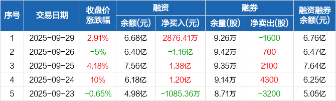 鸣志电器:融资净买入2876.41万元,融资余额6.68亿元(09-29)