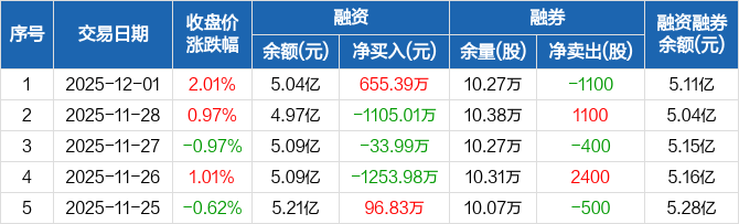 鸣志电器:融资净买入655.39万元,融资余额5.04亿元(12-01)
