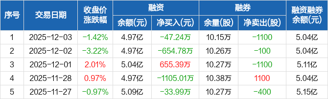 鸣志电器:融资净偿还47.24万元,融资余额4.97亿元(12-03)
