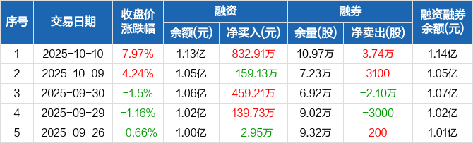 岱美股份:融资净买入832.91万元,融资余额1.13亿元(10-10)
