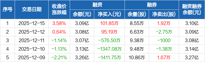 岱美股份:融资净买入101.85万元,融资余额3.09亿元(12-15)