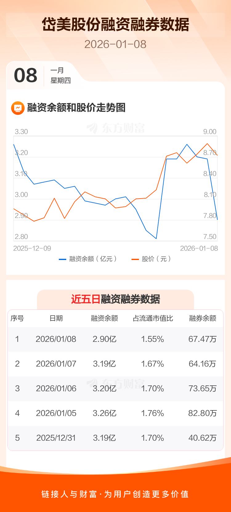 交易所最新数据显示,岱美股份于2026年1月8日获融资买入2296.11万元,融资偿还5250.43万元,当日融资净偿还2954.32万元。目前,该股融资余额2.90亿,占流通市值比例为1.55%。