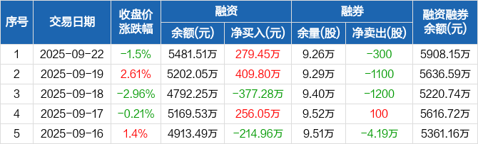 三棵树:融资净买入279.45万元,融资余额5481.51万元(09-22)