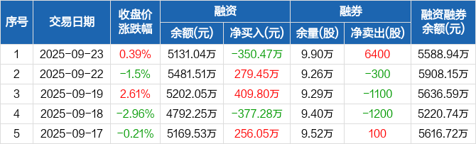 三棵树:融资净偿还350.47万元,融资余额5131.04万元(09-23)