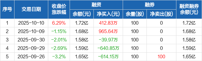 秦安股份:融资净买入412.83万元,融资余额1.72亿元(10-10)