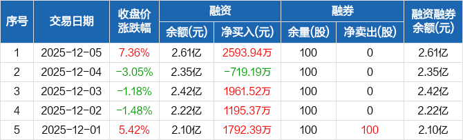 秦安股份:融资净买入2593.94万元,融资余额2.61亿元(12-05)