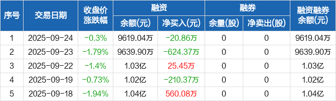来伊份:融资净偿还20.86万元,融资余额9619.04万元(09-24)