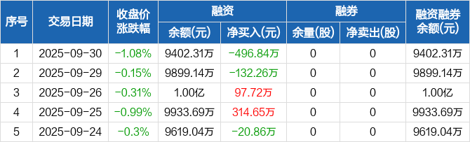 来伊份:融资净偿还496.84万元,融资余额9402.31万元(09-30)