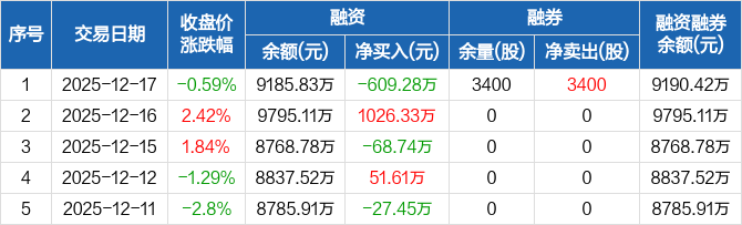 来伊份:融资净偿还609.28万元,融资余额9185.83万元(12-17)