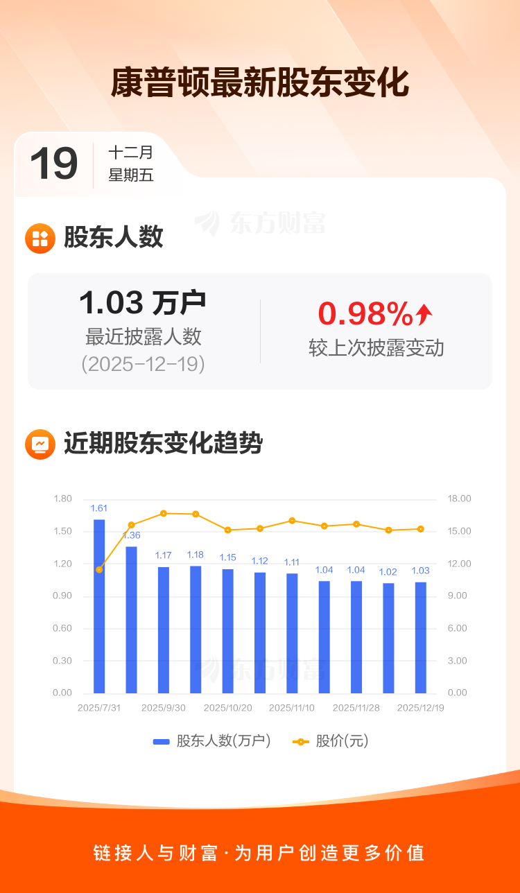 康普顿:截至12月19日最新股东户数1.03万户,较上期增加0.98%