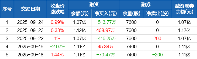 瑞斯康达:融资净偿还513.77万元,融资余额1.07亿元(09-24)