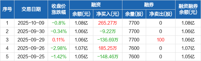 瑞斯康达:融资净买入265.27万元,融资余额1.08亿元(10-09)