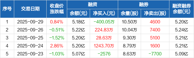 福斯特:融资净偿还400.05万元,融资余额5.18亿元(09-29)