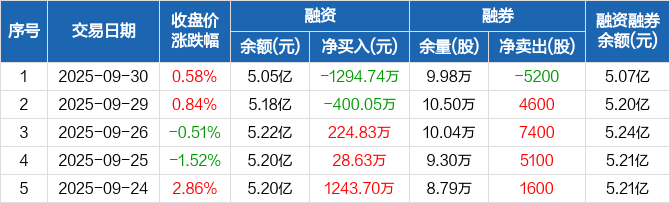 福斯特:融资净偿还1294.74万元,融资余额5.05亿元(09-30)